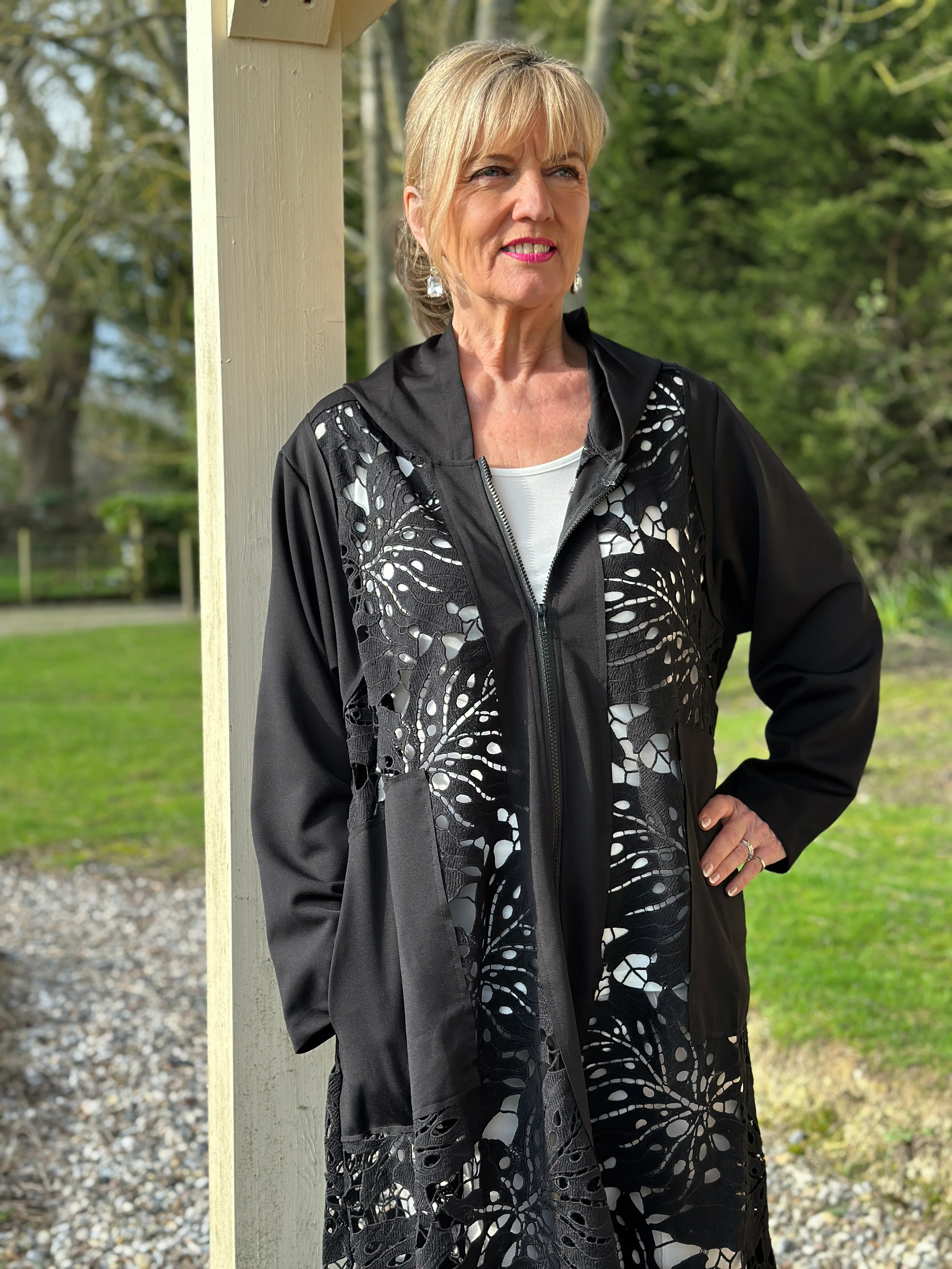 Elegant with a contemporary edge – the Malissa J Longline Lace Hooded Jacket is a statement layering piece designed to elevate any outfit.
