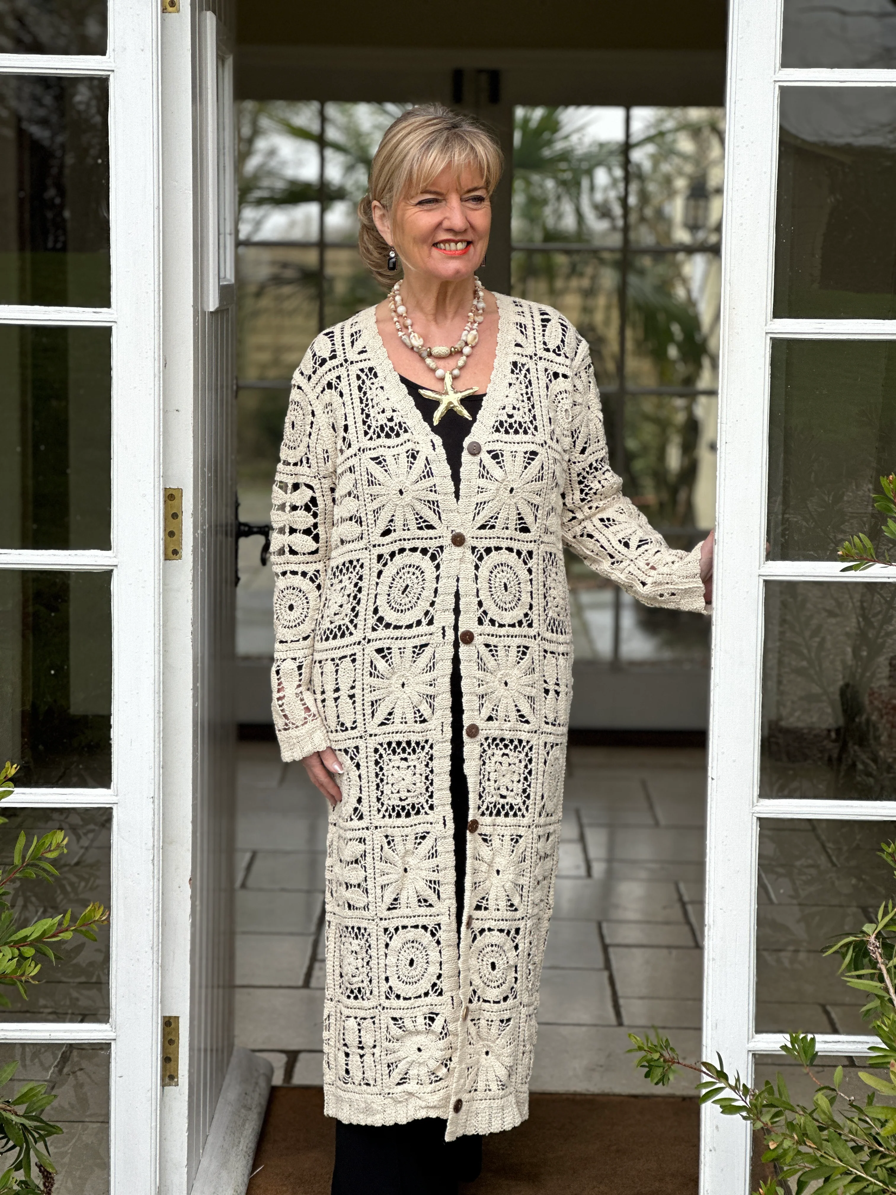 Sea Breeze Longline Crochet Cardigan | Beige