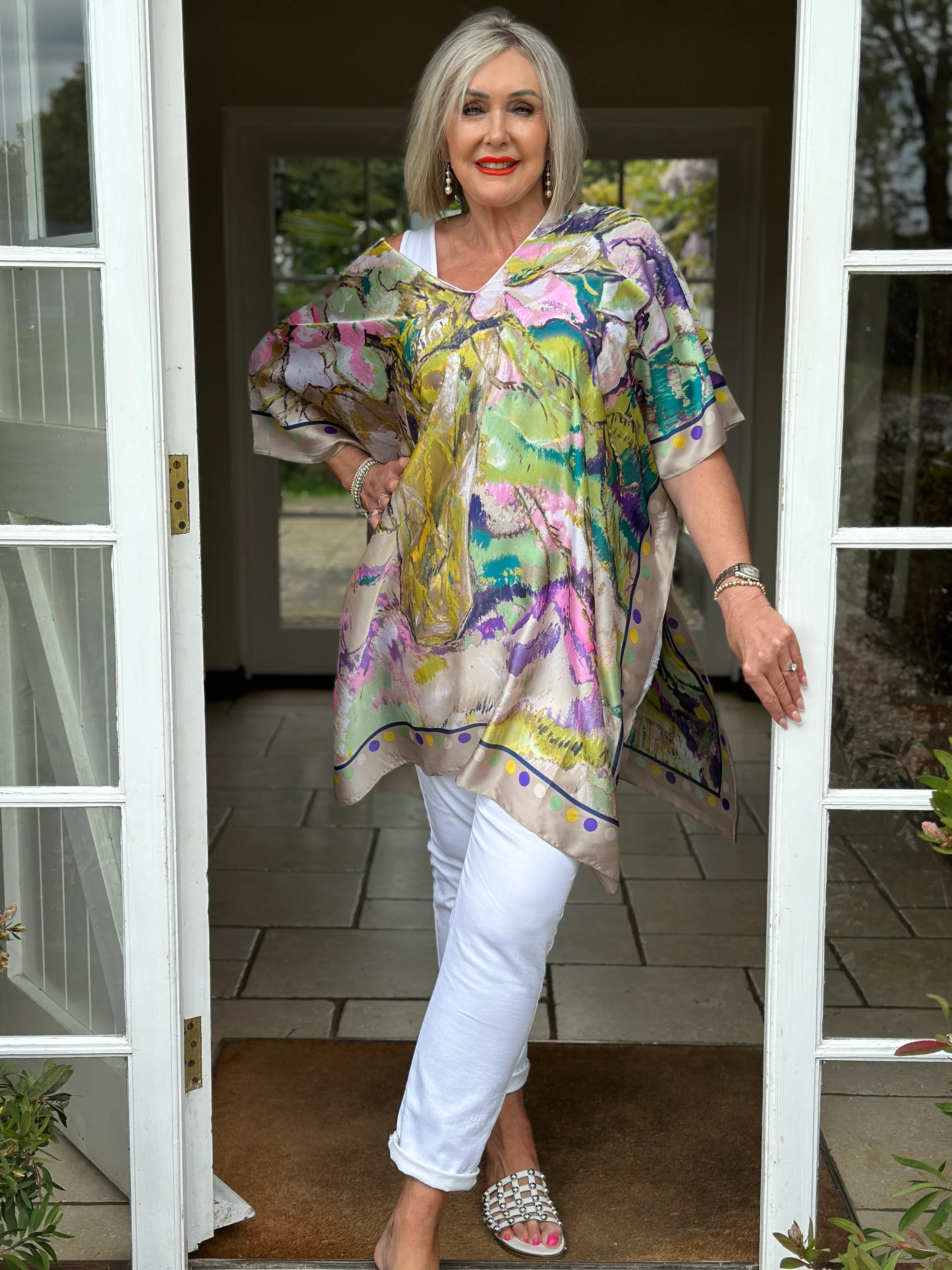 Bright, breezy, and effortlessly eye-catching, this Abstract Polka Hem design Kaftan is your go-to piece for laid-back summer elegance. Crafted in a lightweight, floaty fabric that drapes beautifully to flatter all figures.